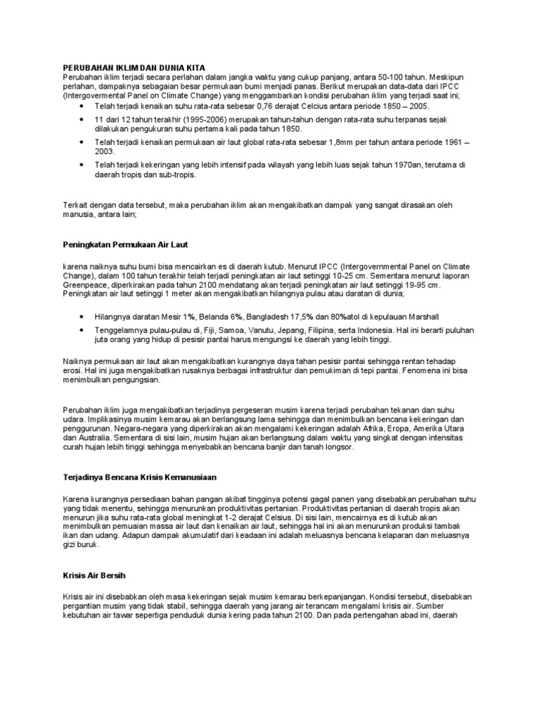 Perubahan Iklim Dan Dunia Kita