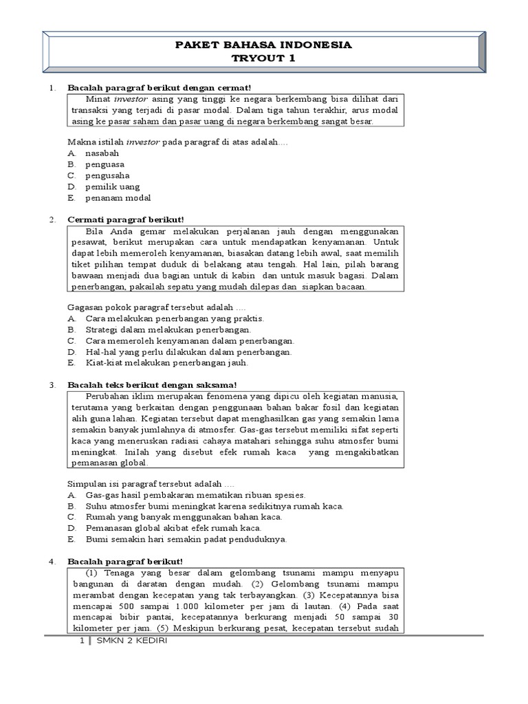 Paket Bahasa Indonesia Tryout 1