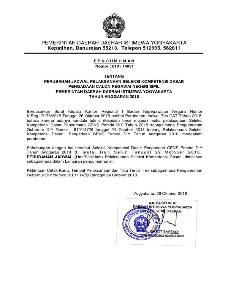 Kementerian PANRB on Twitter: “PERUBAHAN JADWAL Bagi peserta tes CPNS Kementerian PANRB & KASN di Kaltim, kami beritahukan perubahan jadwal SKD menjadi : Minggu, 29 Okt 2018 Sesi 6 Jam 18.30 Di