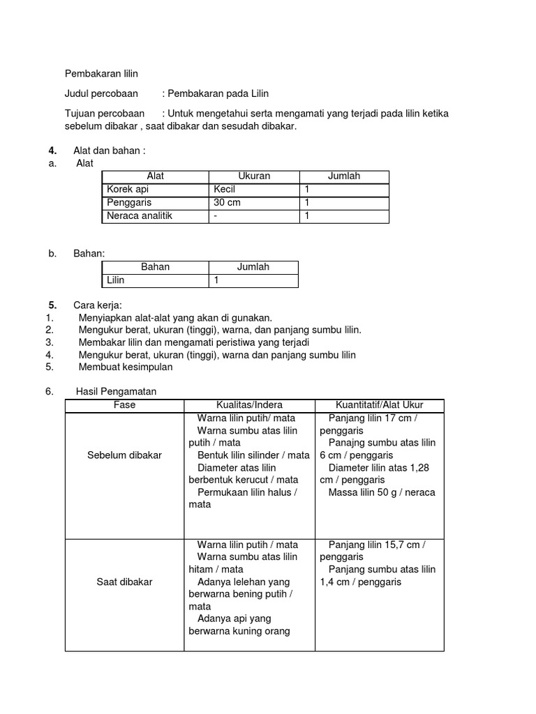 DOC) PERUBAHAN PADA PEMBAKARAN LILIN | Monika Tiara - Academia.edu