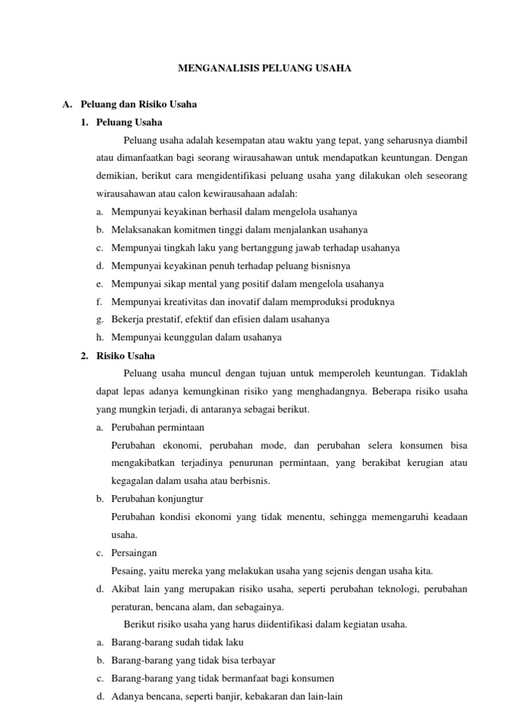 Analisis Peluang Dan Resiko Usaha Beserta Penjelasan - Mario Bd