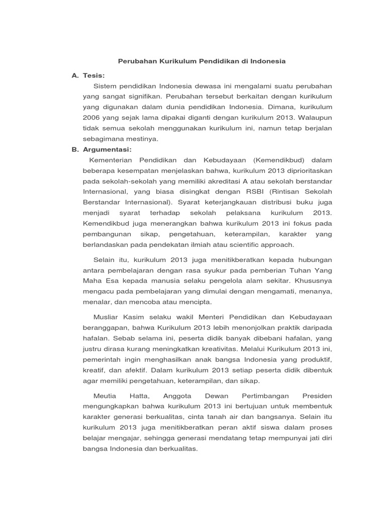 Perubahan Kurikulum Pendidikan di Indonesia.docx | BaSur Anantama - Academia.edu