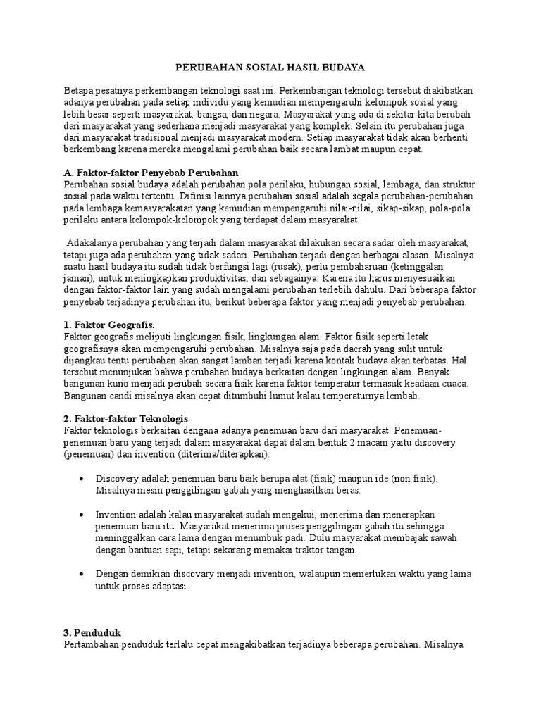 DOC) Perubahan Sosial Budaya: Pengertian, Proses & Faktor | rahmat …
