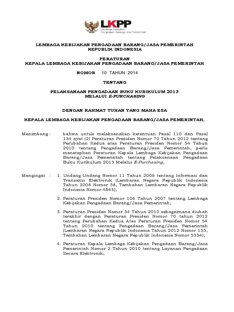 PDF) LAMPIRAN PERATURAN PRESIDEN REPUBLIK INDONESIA NOMOR 4 TAHUN 2015 TENTANG PERUBAHAN KEEMPAT ATAS PERATURAN PRESIDEN NOMOR 54 TAHUN 2010 TENTANG PENGADAAN BARANG/JASA PEMERINTAH | Indri astuti - Academia.edu