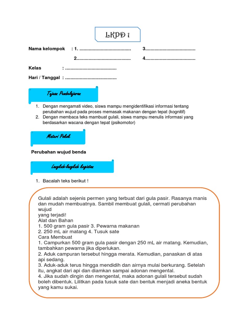 Pengalaman Belajar Perubahan Wujud Benda membuat Gulali Tema 3 …