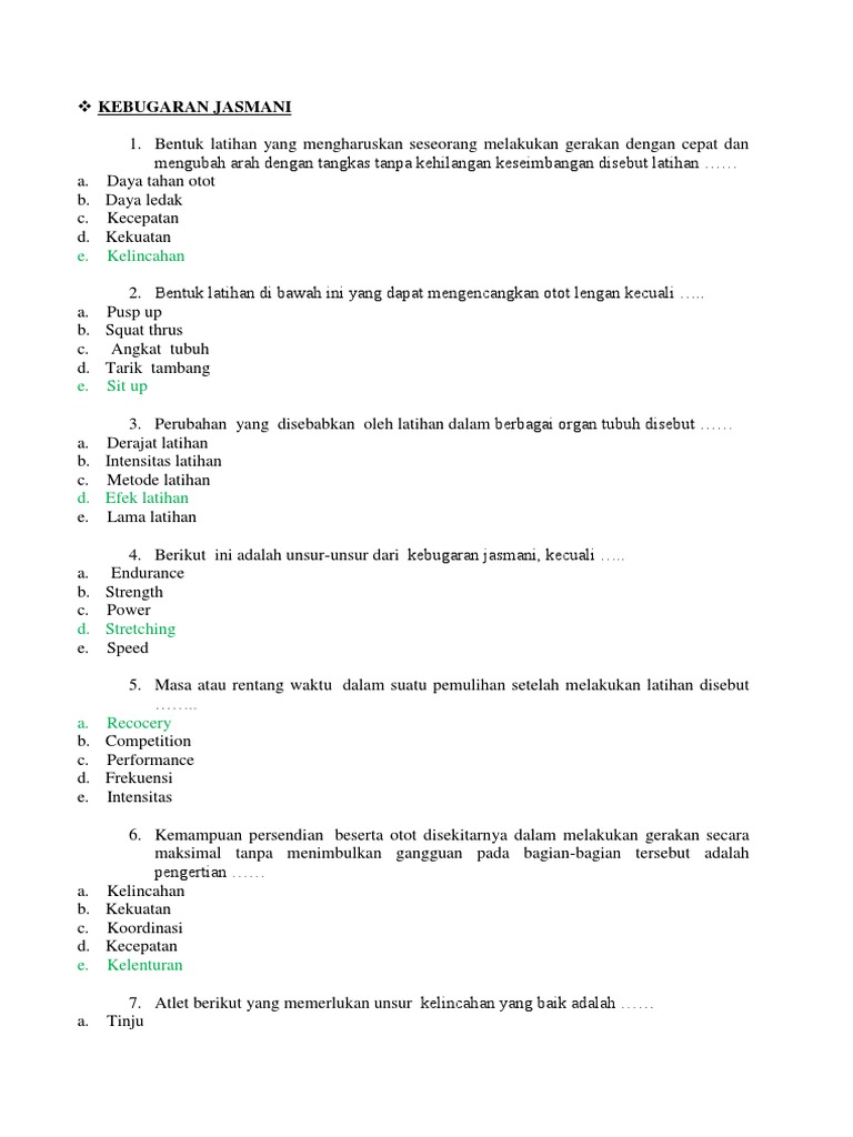 Soal Penjas Materi Kebugaran Jasmani Lengkap Jawabannya …