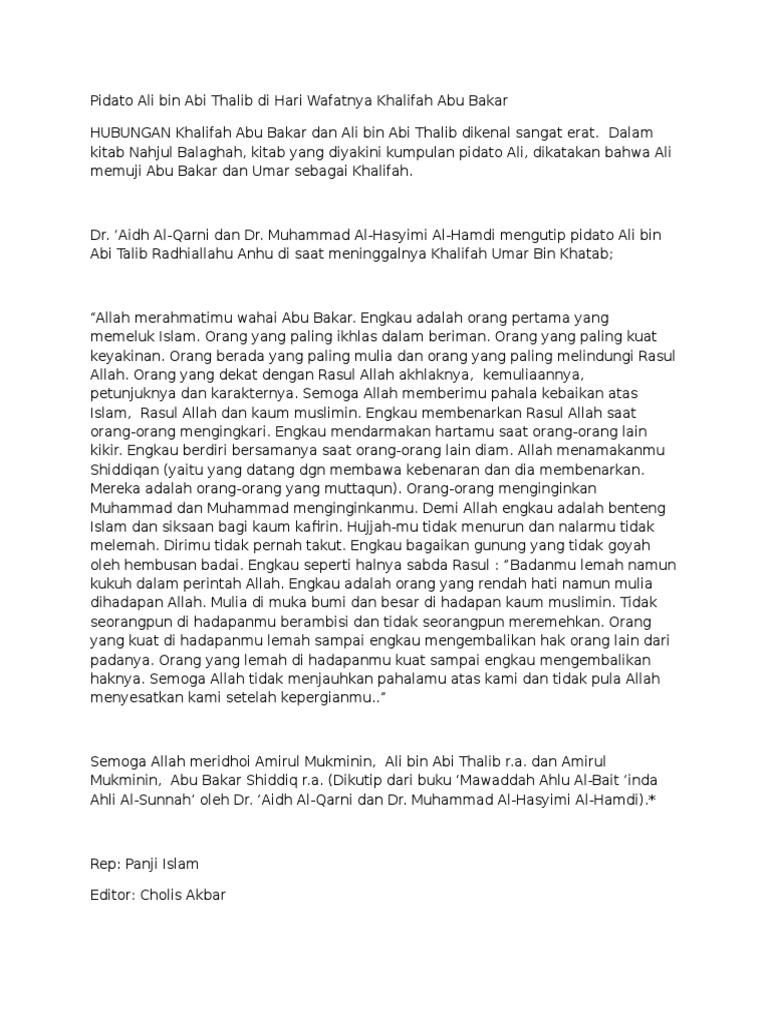 pidato arab abu bakar as siddiq - Brainly.co.id