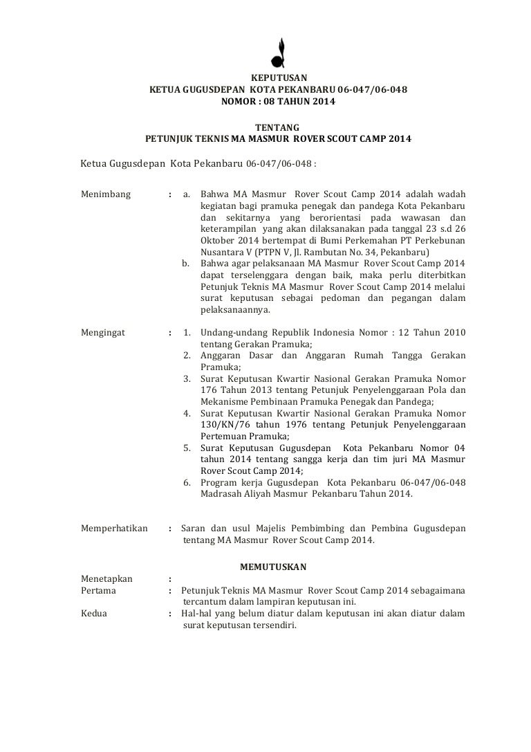 PETUNJUK TEKNIS PERKEMAHAN MA.MASMUR ROVER SCOUT CAMP 2014