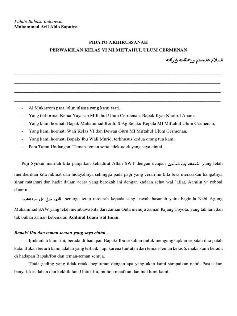 DOC) Contoh Pidato atau Sambutan Perpisahan MTs/SMP | Gembel Pulsa - Academia.edu