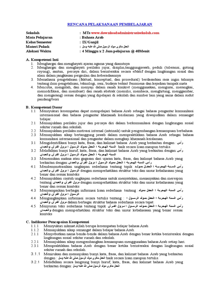RPP Bahasa Arab Kelas 9 Kurikulum 2013 Www.downloadadministrasisekolah.com 1