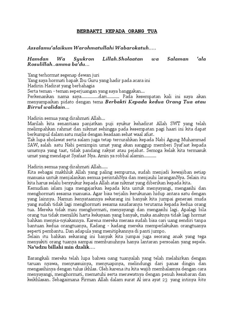 DOC) Teks pidato bhs indonesia berbakti kepada orang tua | ENDANG …
