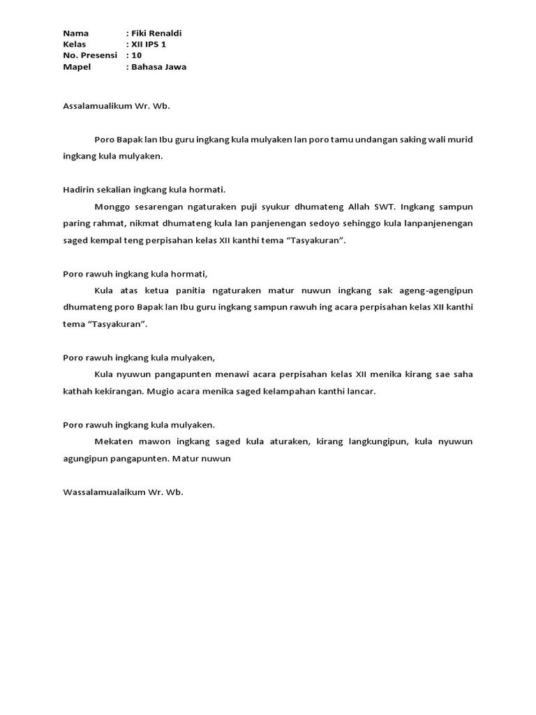 Contoh Pidato Perpisahan Kelas 12 Bahasa Jawa