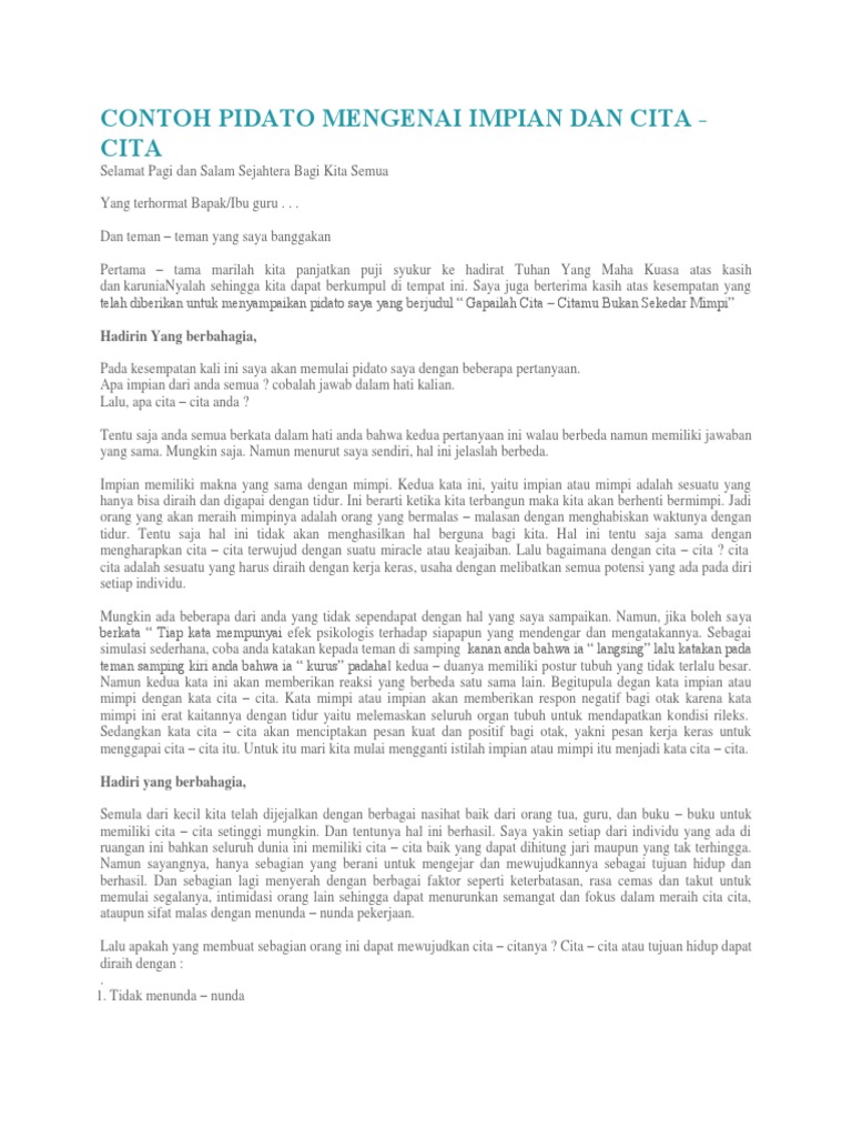 Contoh Pidato Cita Cita | Contoh Soal Dan Materi Pelajaran 6