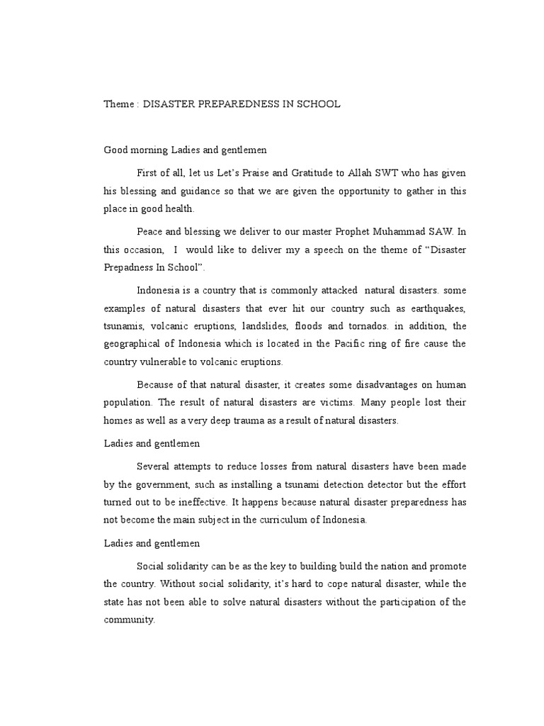 Contoh teks pidato Bahasa Inggris | Natural Disasters | Emergency Management