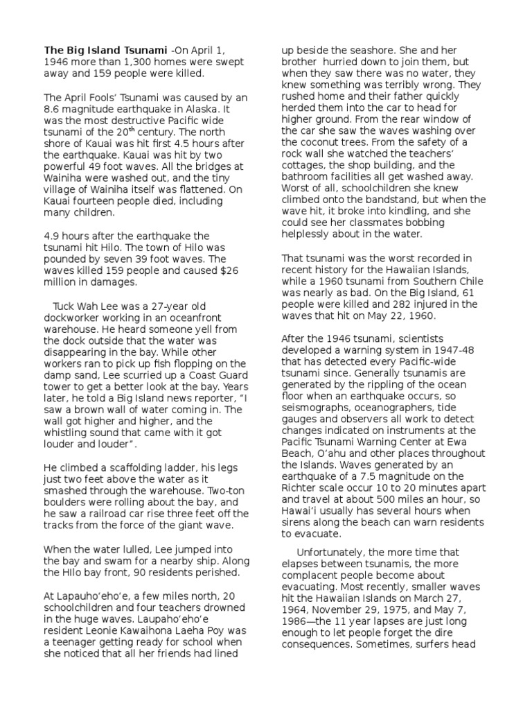 tsunami big island reading b | Hawaii (Island) | Tsunami