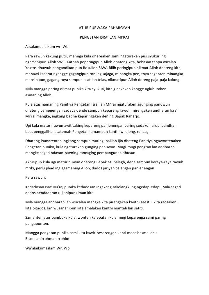 Contoh Pidato Bahasa Jawa Kromo Inggil MC/Pembawa Acara Isra' Mi …