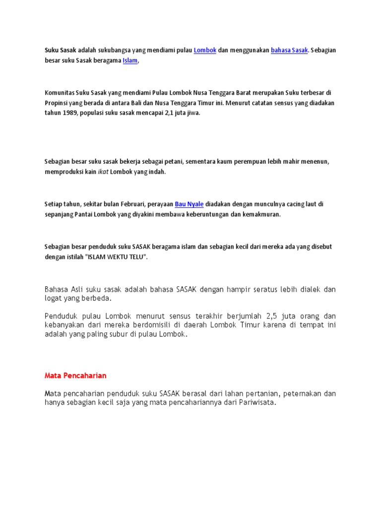 Suku Sasak Adalah Sukubangsa Yang Mendiami Pulau Lombok Dan Menggunakan Bahasa Sasak