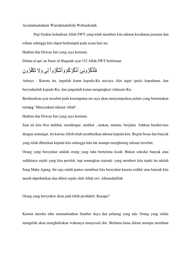 DOC) Contoh Ceramah Tentang Bersyukur Kepada Allah SWT | Buddi …