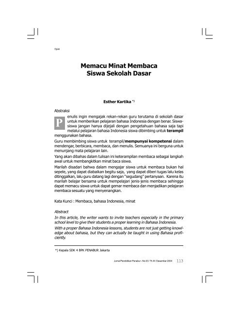 PDF) UPAYA GURU DALAM MENUMBUHKAN MINAT BACA SISWA SEKOLAH DASAR SUCI MUHARANI | suci muharani - Academia.edu