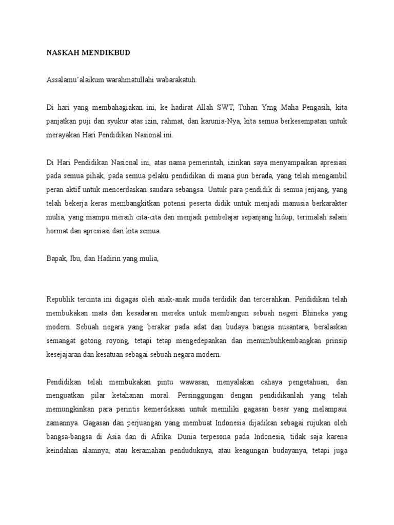 DOC) Contoh Naskah Pidato Hari Pendidikan Nasional 2 | Muhamad Idris - Academia.edu