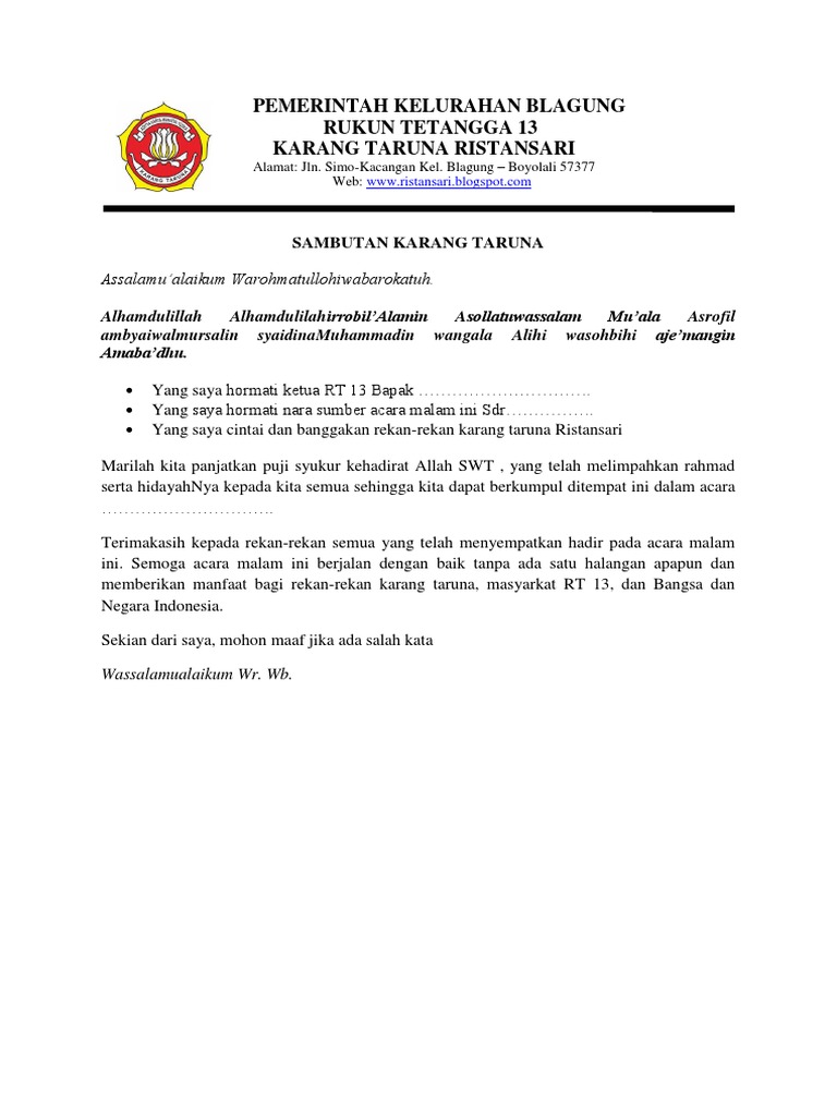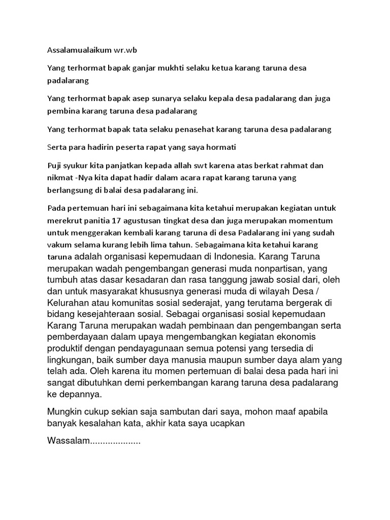 DOC) sambutan tuan rumah karang taruna | ahmat jailani - Academia.edu
