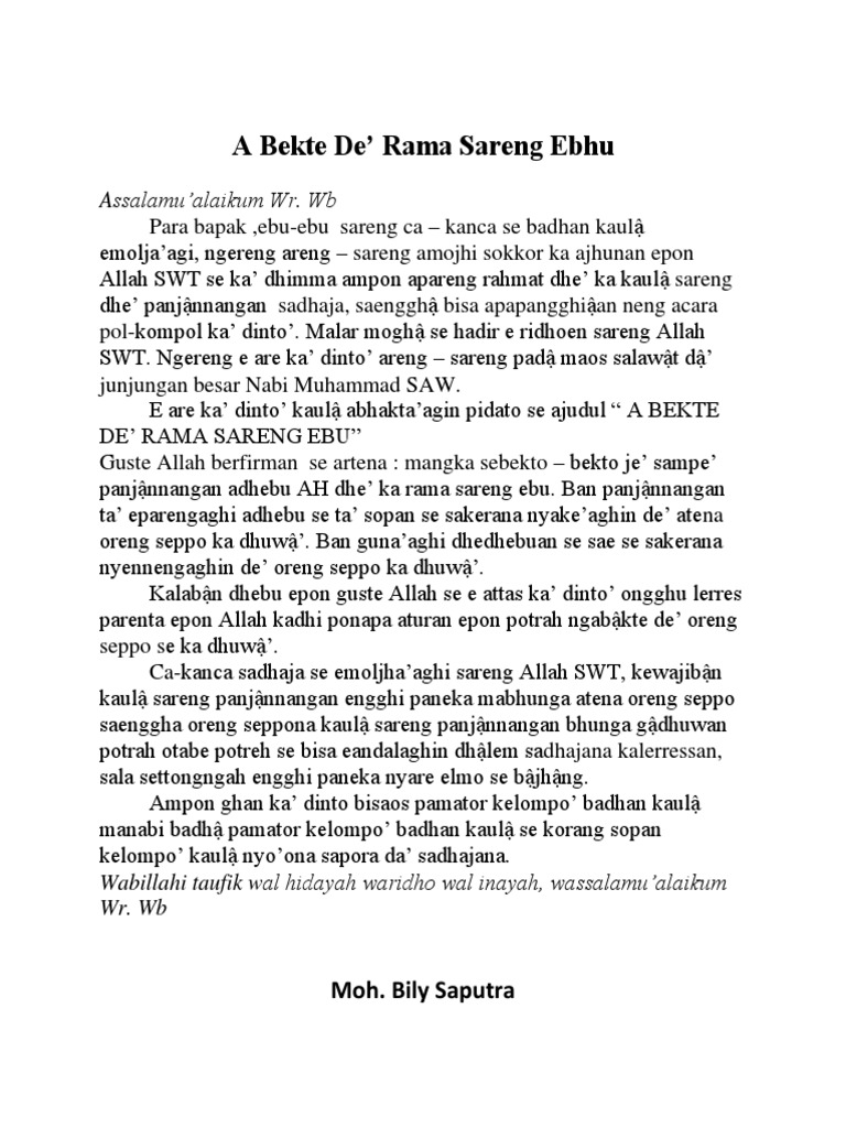 DOC) Pidato Bahasa Madura | vie vie - Academia.edu