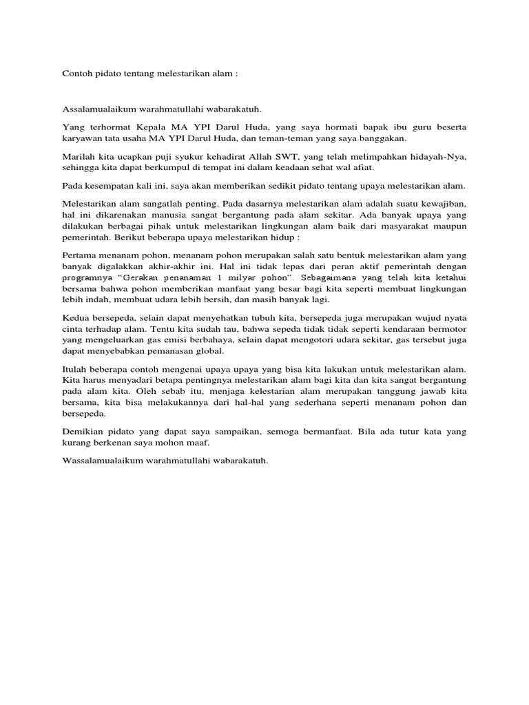 DOC) Pidato Tentang Lingkungan | Fajar Xarjaf - Academia.edu