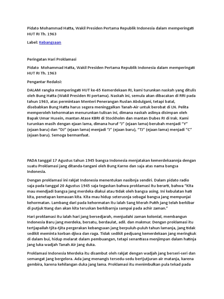 tuliskan isi pidato moh hatta! - Brainly.co.id