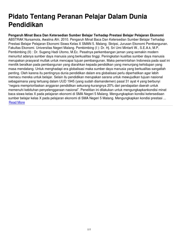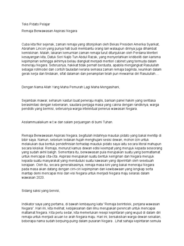DOC) Pidato : Peranan Pelajar Terhadap Prestasi Bangsa | Wira …