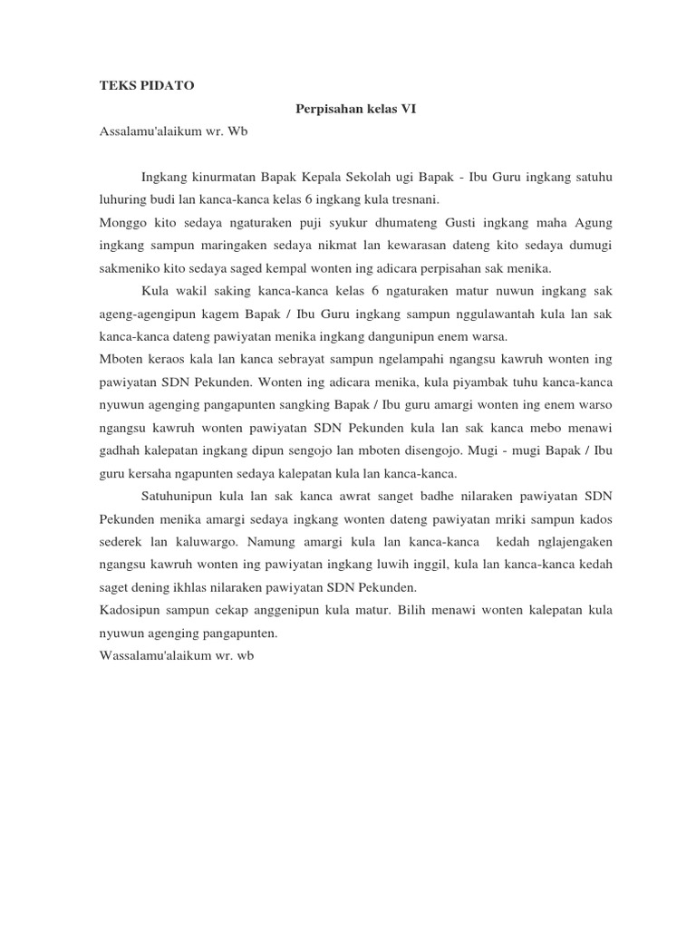 Contoh Pidato Bahasa Jawa Singkat Tentang Perpisahan Kelas 6
