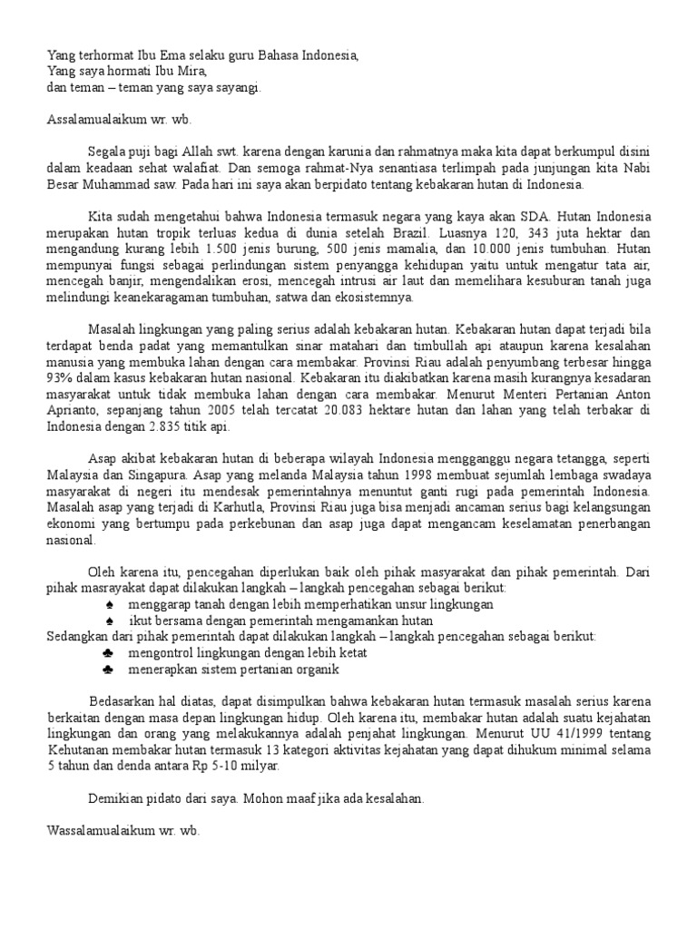 NASKAH Pidato Singkat tentang Kebakaran Hutan - Kumpulan Naskah …