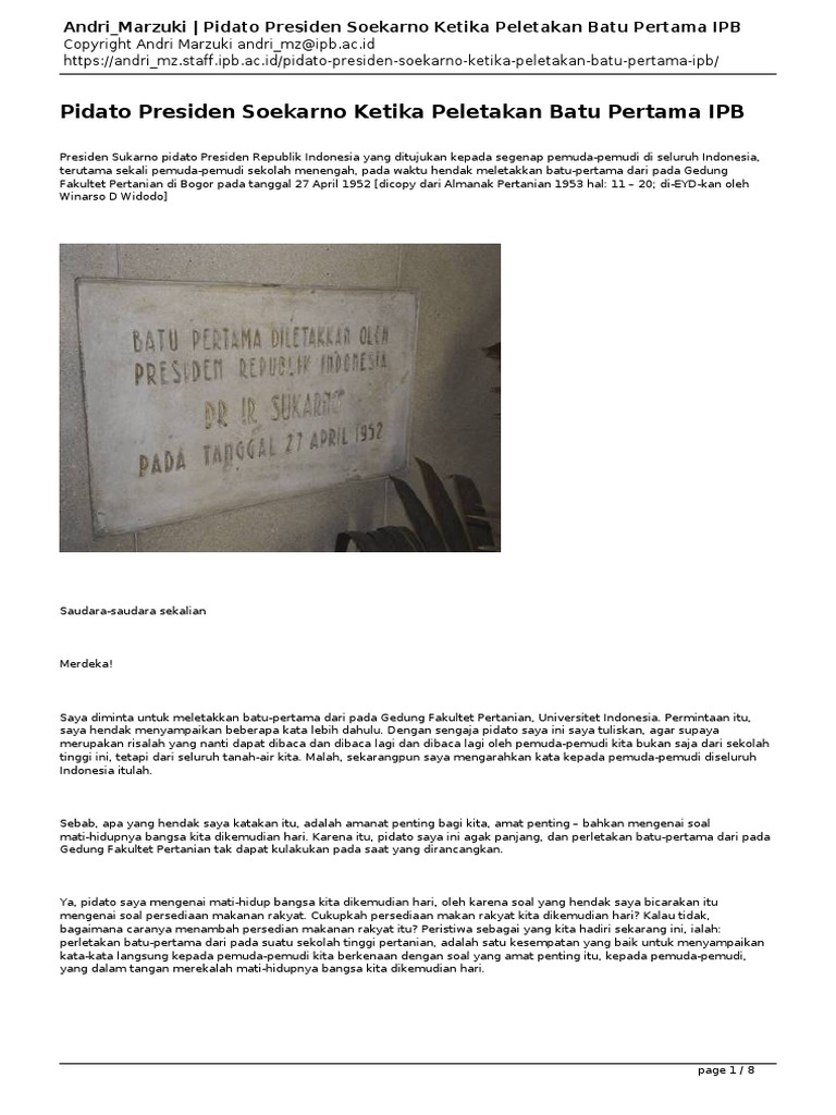 Andri_Marzuki-Pidato Presiden Soekarno Ketika Peletakan Batu Pertama IPB