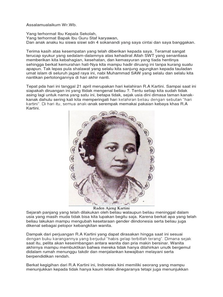 Teks Pidato Bahasa Jawa Ra Kartini - Berbagai Teks Penting