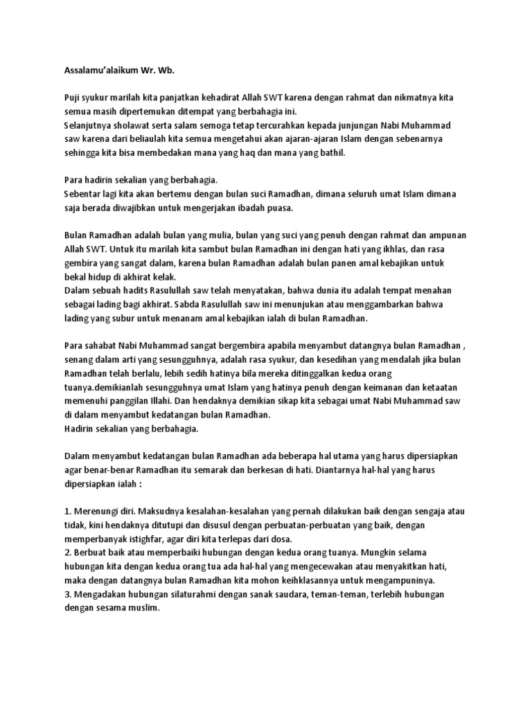 DOC) Contoh Teks Pidato Lailatul Qadar | Cania Selvia - Academia.edu