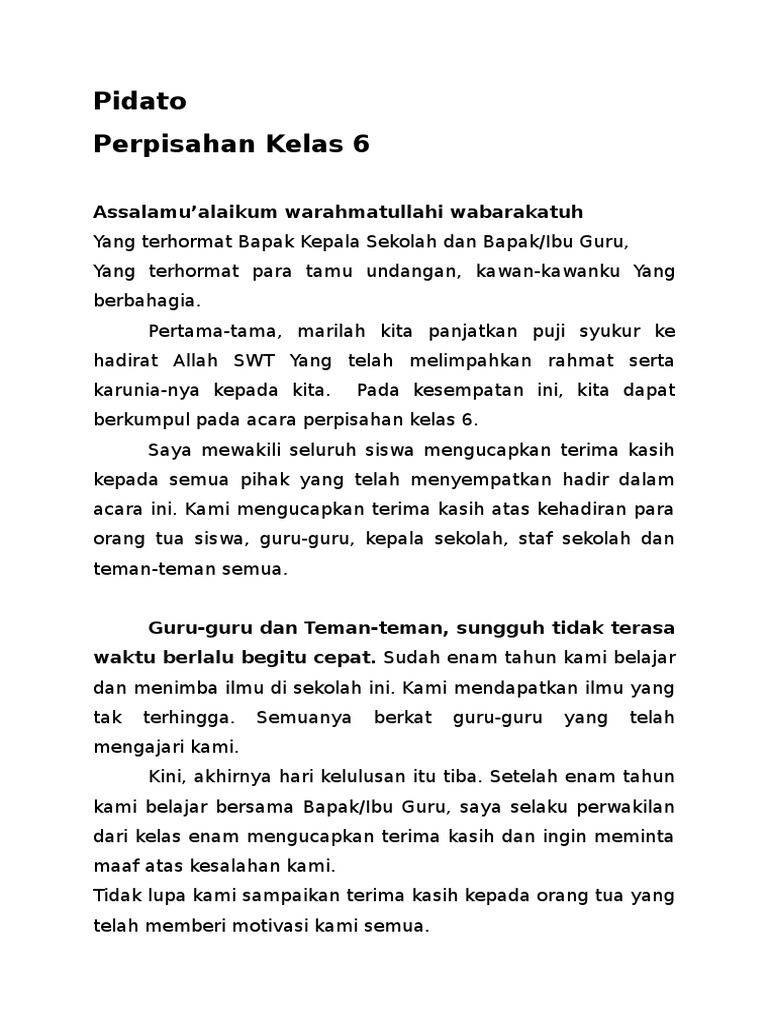 PDF) CONTOH PIDATO 51 Pidato Perpisahan SD | Farid Ramlan - Academia.edu