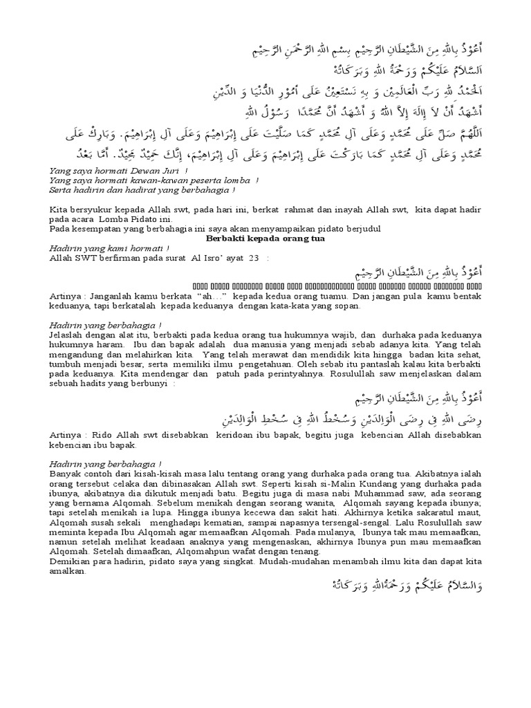 DOC) Pidato kedua orgtua | mitth islamiah - Academia.edu