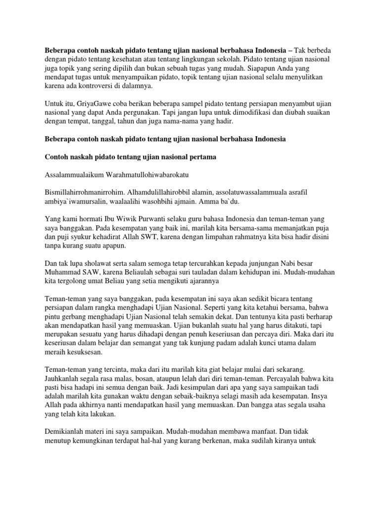 Beberapa Contoh Naskah Pidato Tentang Ujian Nasional Berbahasa …
