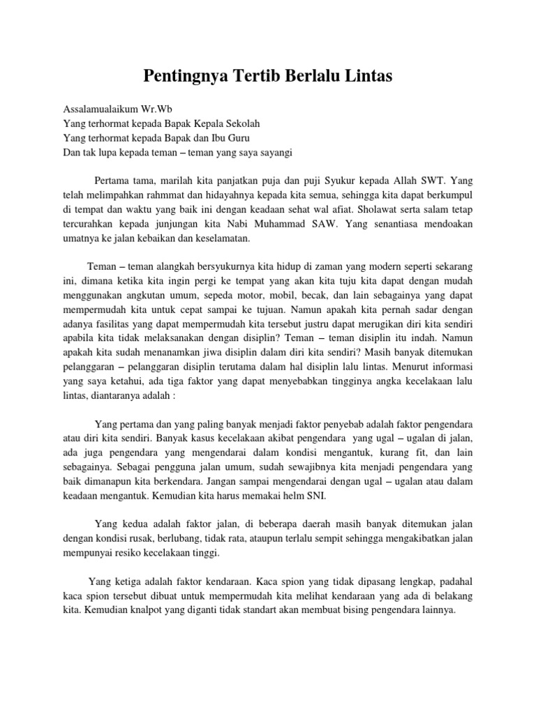 Pidato Tata Tertib Berlalu Lintas