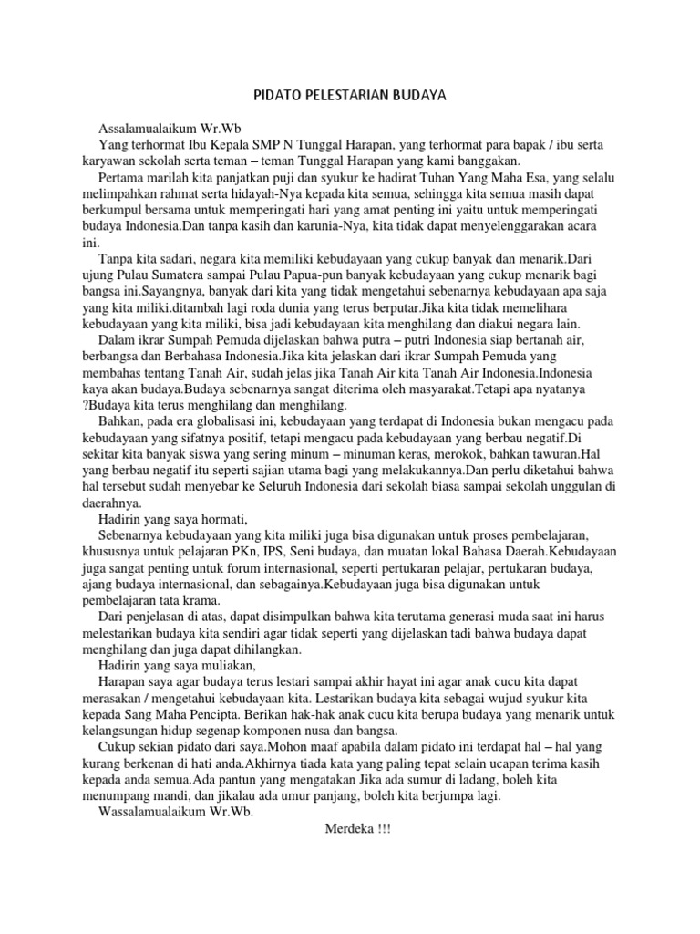DOC) pidato tentang kebudayaan indonesia | Lina Alvi - Academia.edu