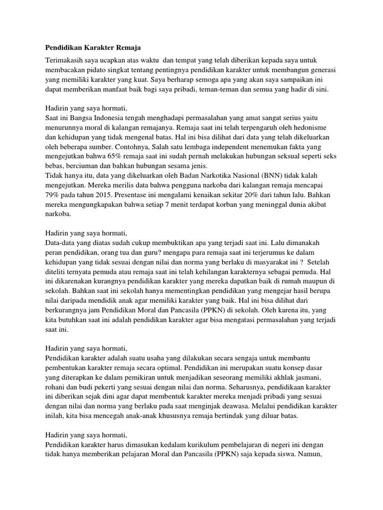 DOC) Pidato Tentang Pendidikan Karakter | Nathania Emauela - Academia.edu
