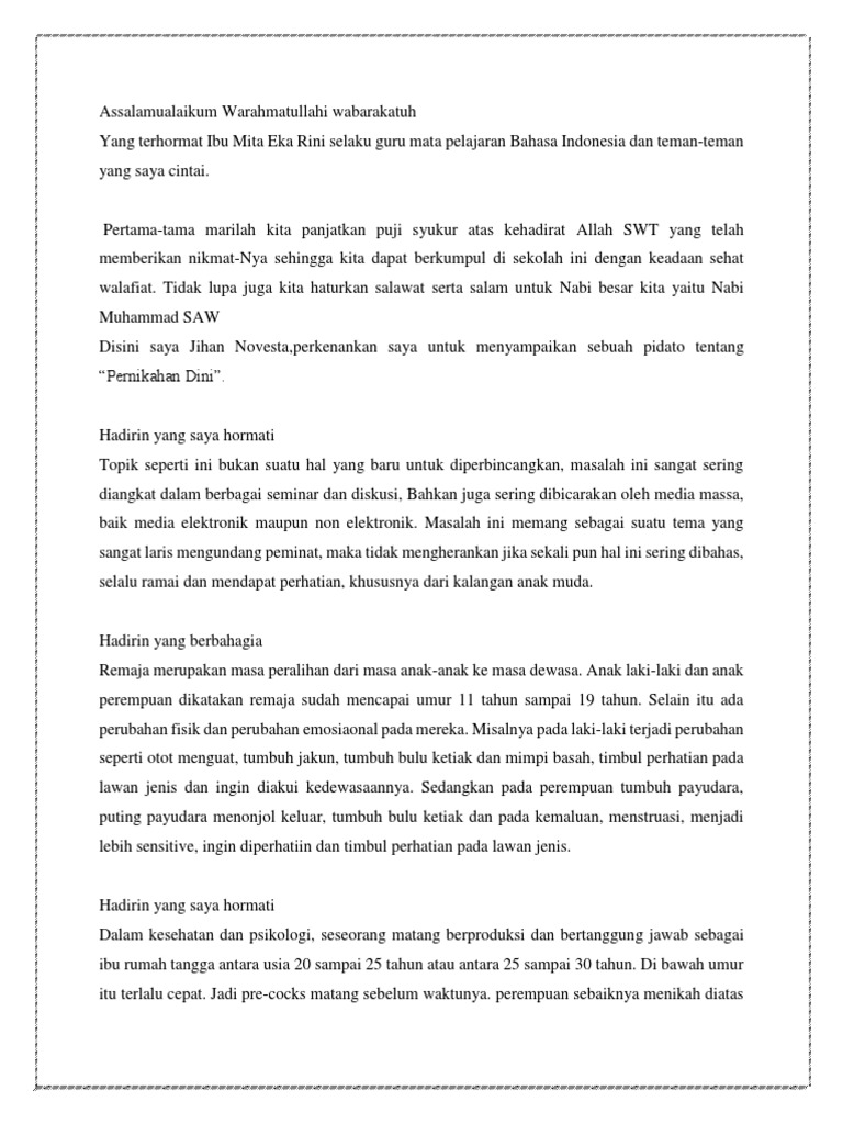 Cotoh Pidato Tentang Pernikahan Dini Termantap - Pidato Singkat