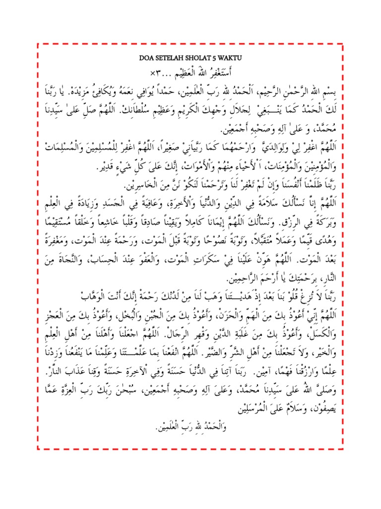 Doa Setelah Sholat 5 Waktu