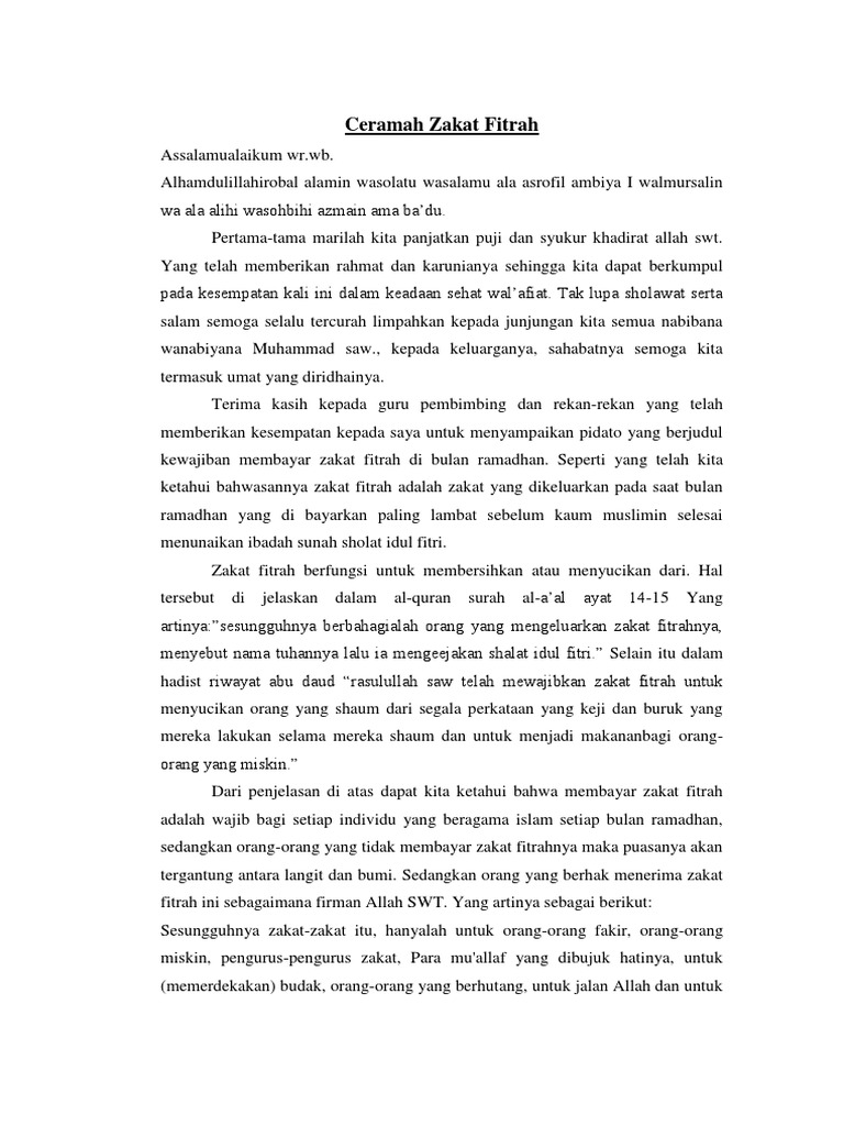 Contoh Pidato Zakat Fitrah - Contoh RR