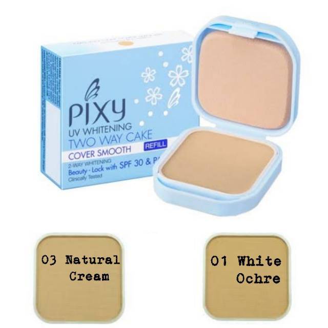 PIXY UV Whitening Two Way Cake Cover Smooth Refill - 01 White Ochre / 03 Natural Cream | Shopee Indonesia