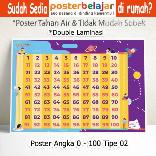 Jual Poster Angka 0 - 100 Tipe 01 untuk Edukasi Anak Usia Dini …