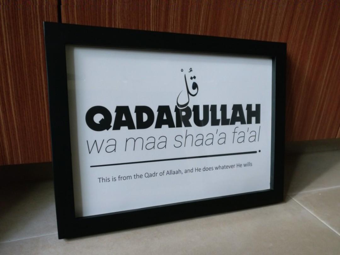 Islamic Wall Art Poster Quote Benefits Saying “Qadarullah wa maa shaa’a fa’al”, Design & Craft, Art & Prints on Carousell