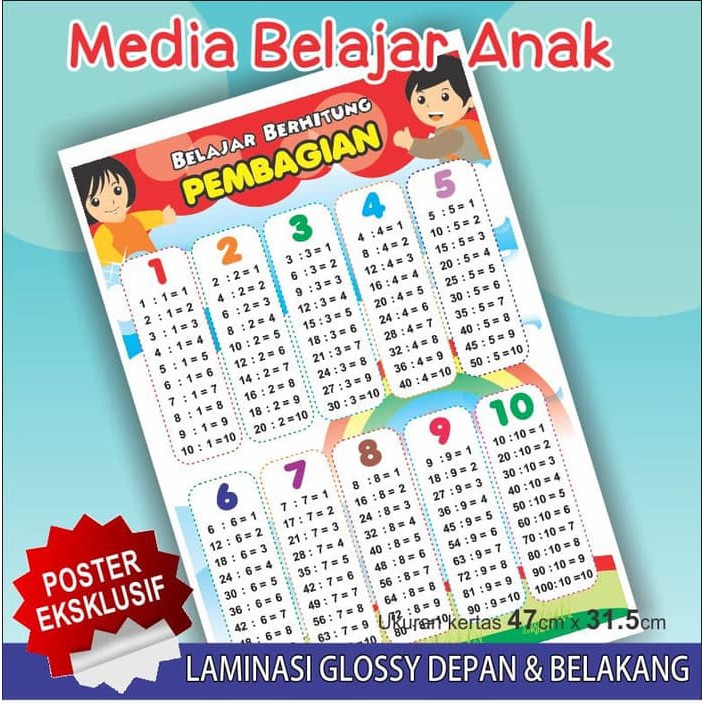 Poster belajar pembagian untuk anak SD / matematika Limited | Shopee Indonesia