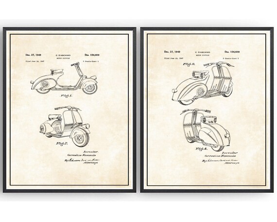 Vespa Scooter Patent Print Blueprint Piaggio Vespa Poster | Etsy