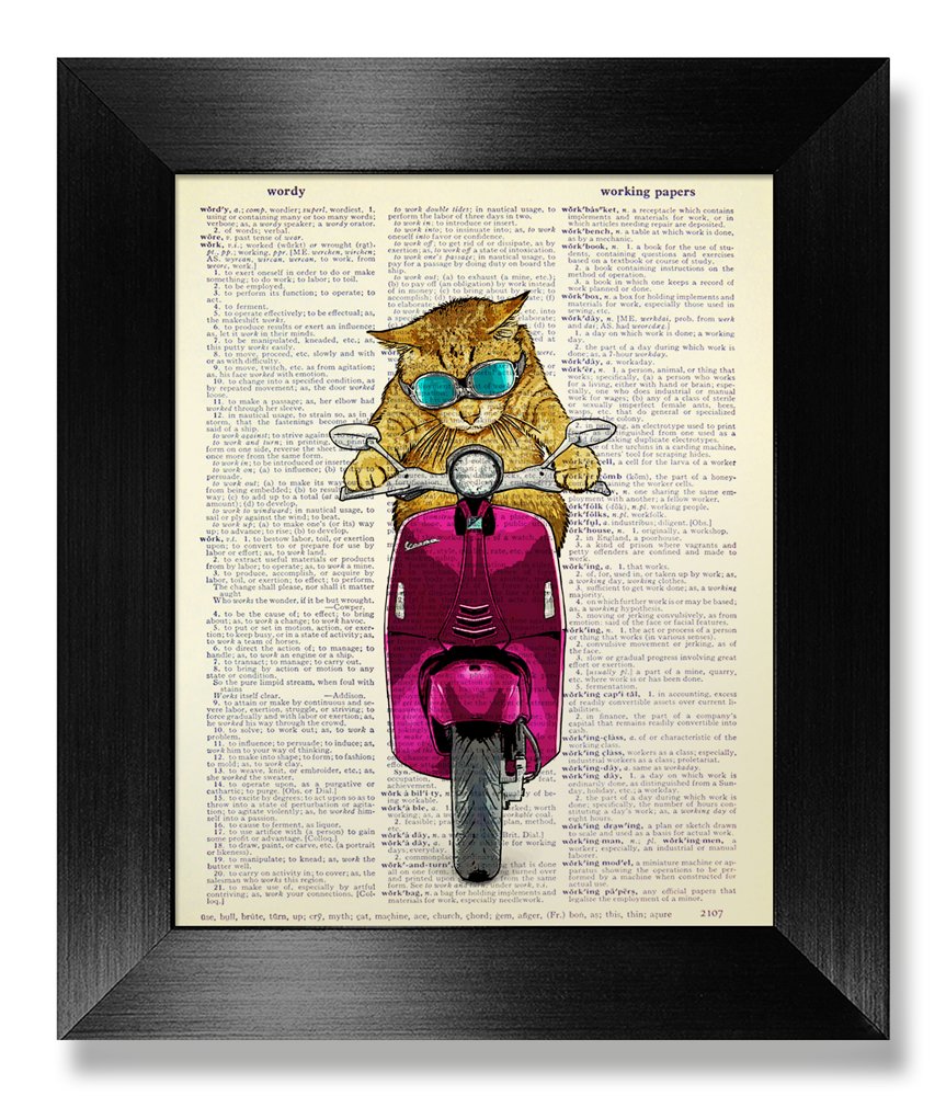 Amazon.com: Cool Tabby Cat with Vespa Poster, Cat with Glasses, Cat Decor, Cat Art Print, Cat Poster, Cat Wall Art, Cat Wall Decor, Cat Print, Original Artwork, Dictionary Art Print, 8x10: Handmade
