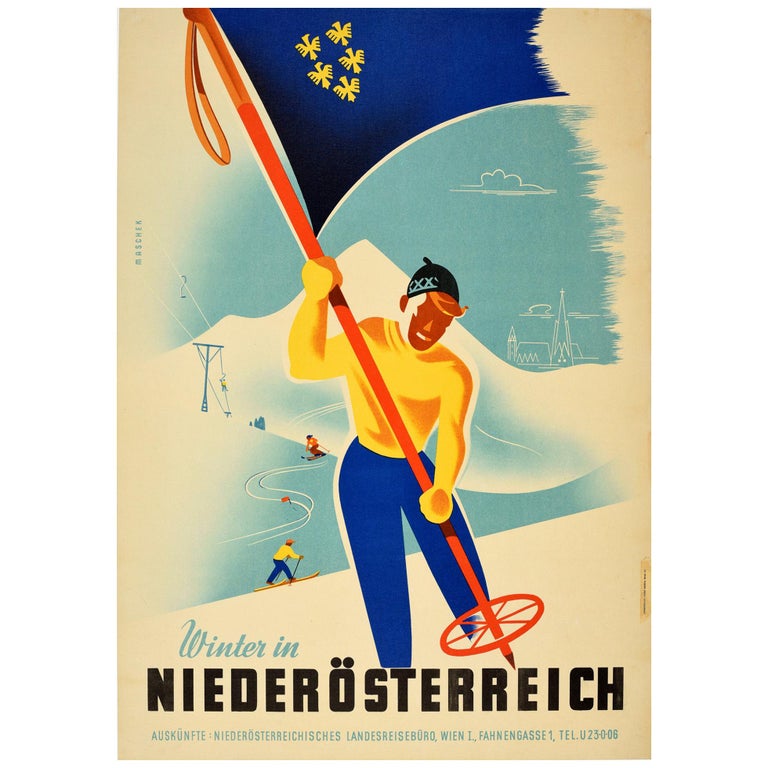 Original Vintage Sport Skiing Poster Winter in Niederosterreich / Lower Austria at 1stDibs